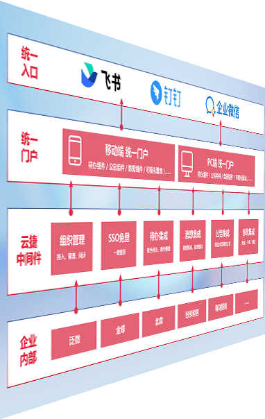 对协作平台提供支持服务,,,支持企业应用与协作平台对接,,,,包含组织同步、、消息集成、、、待办集成等。。。。支持目前主流的协作平台:钉钉、、、企微和飞书。。。。